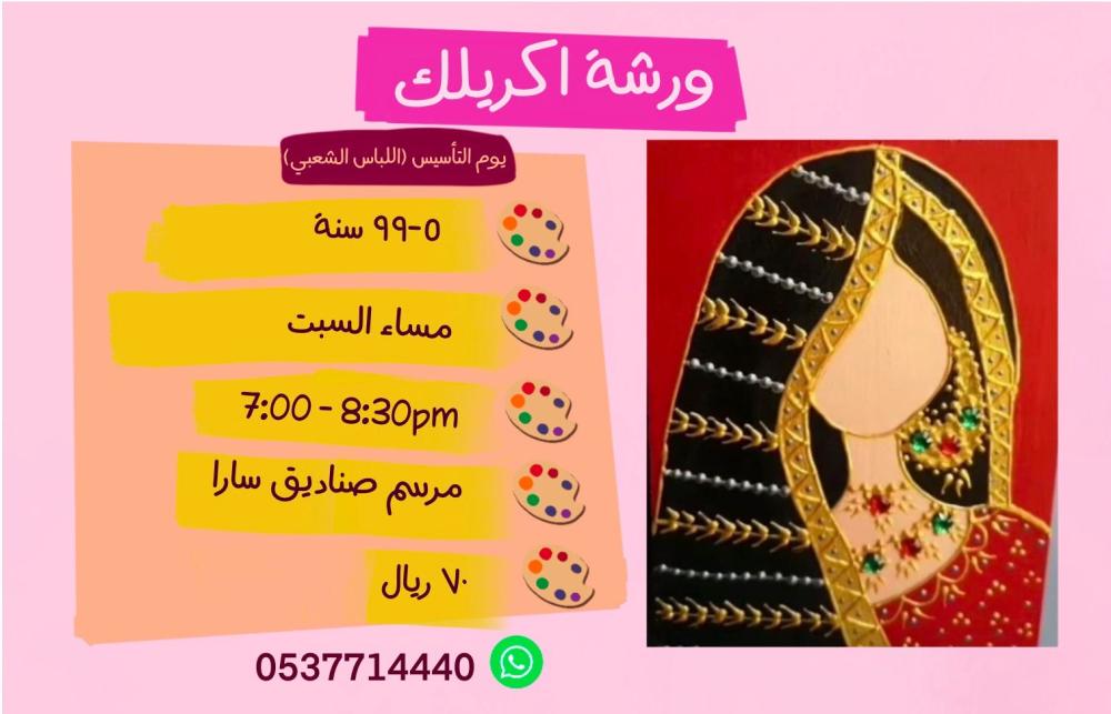 ورشة اكريلك يوم التأسيس(اللباس الشعبي) مساء السبت