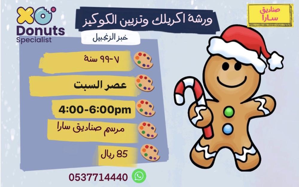 تلوين لوحة اكريلك + تزين قطعتين من رجل الزنجبيل لكل فنان