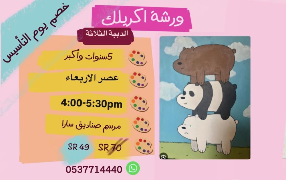 ورشة اكريلك الدببة الثلاثة عصر الاربعاء