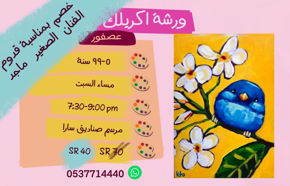 ورشة يوم واحد، يتم تعلم مهارة استخدام الفرشة والالوان