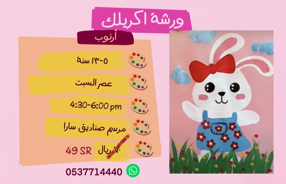 -في حالة الغياب المرضي او ل أي سبب كان: يحق للمشترك تعويض حصة حرة بدون معلمه في المرسم