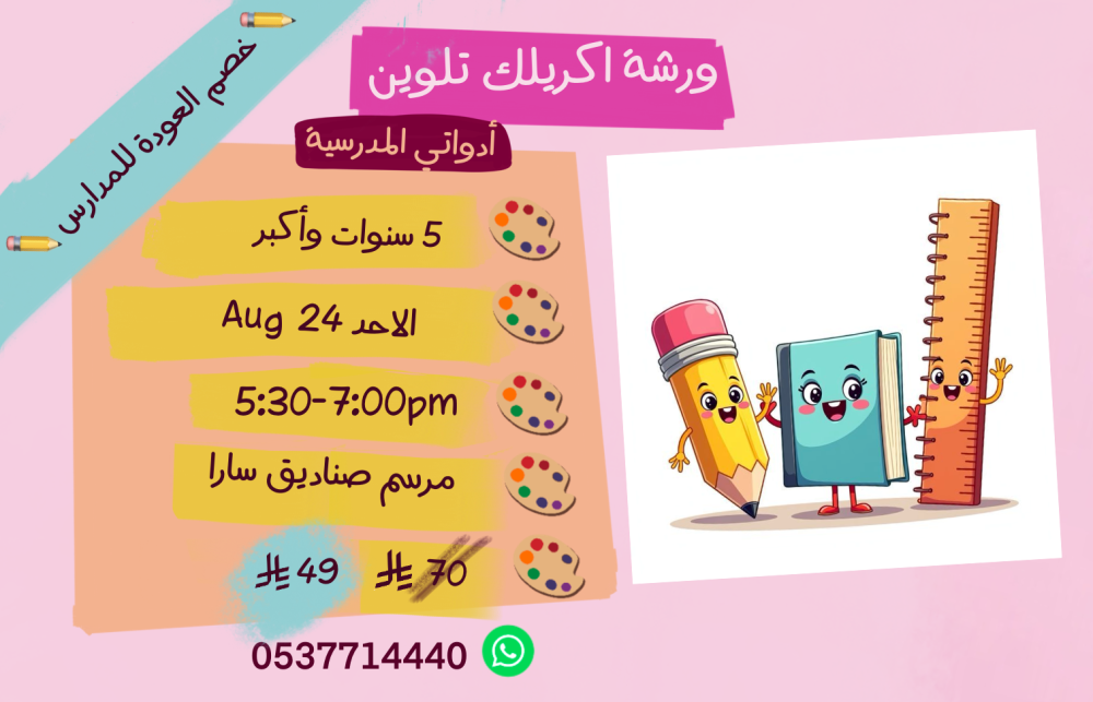ورشة أدواتي المدرسية عصر الاحد