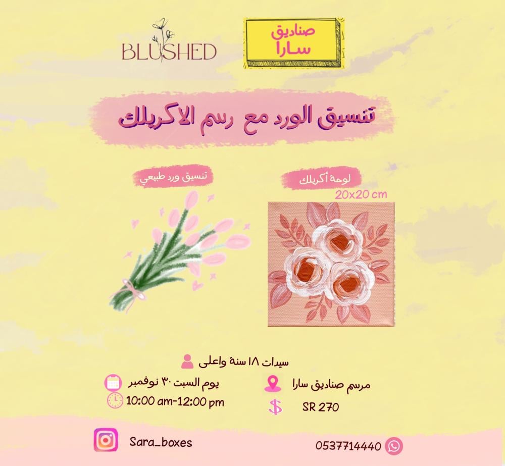 ورشة تنسيق الورد مع رسم اكريلك صباح السبت