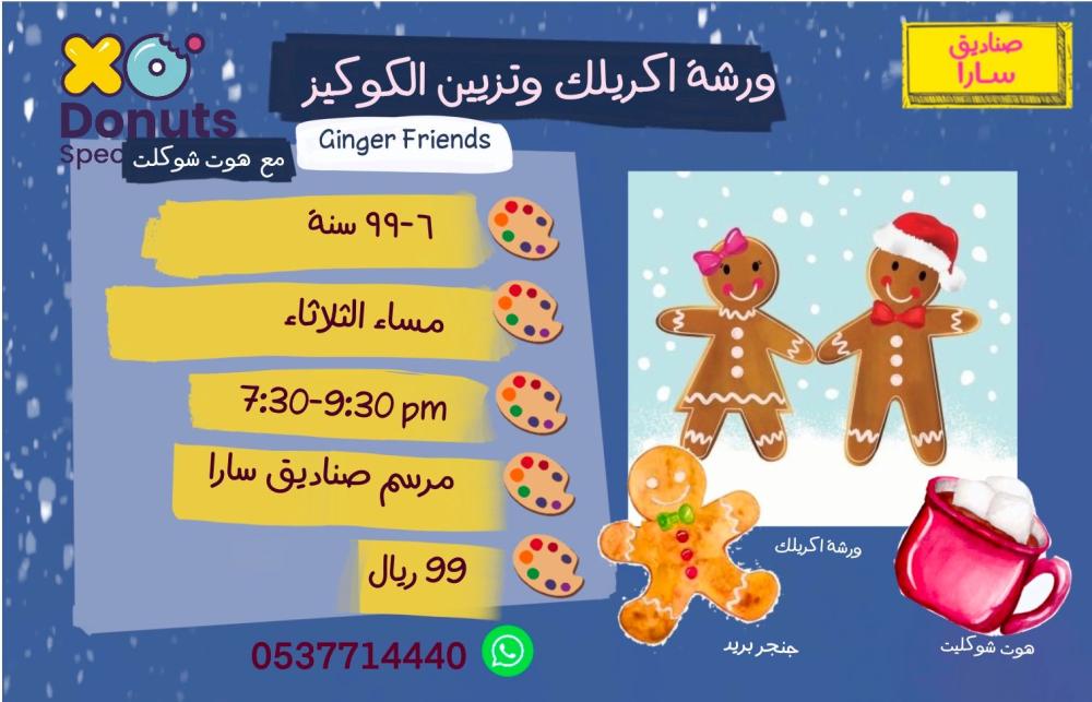 ورشة اكريلك مع تزين كوكيز(اصدقاء الزنجبيل)&هوت جوكلت