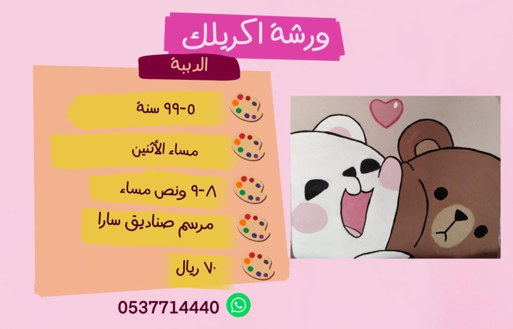 ورشة يوم واحد، يتم تعلم مهارة استخدام الفرشة والالوان