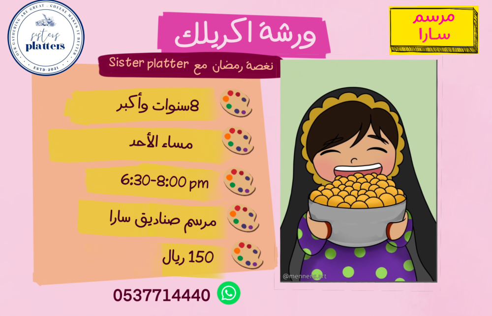 ورشة اكريلك نغصة رمضان مع sister platter مساء الأحد