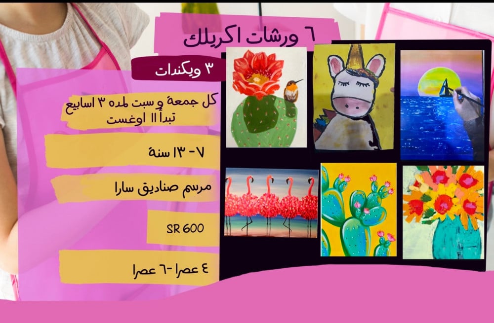 ورشات اكريلك مبتدىء 11 اوغست لمدة 3 اسابيع