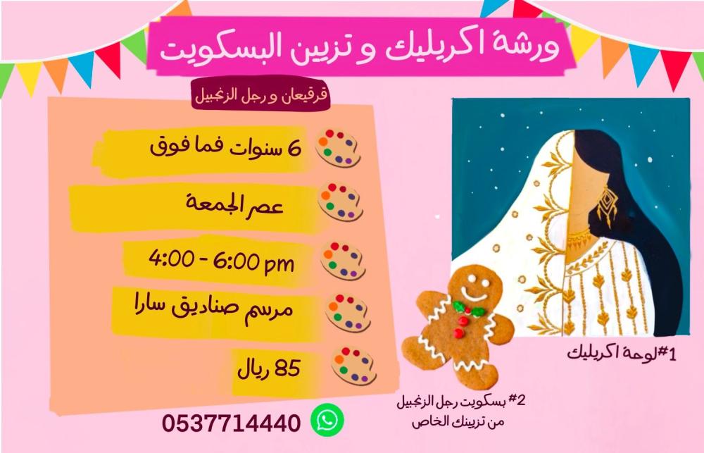 ورشة اكريلك قرقيعان وتزيين البسكويت عصر الجمعة