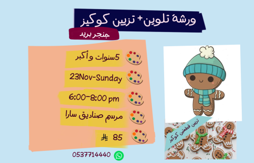 ورشة فنية اكريلك تلوين+تزين قطعتين من الكوكيز