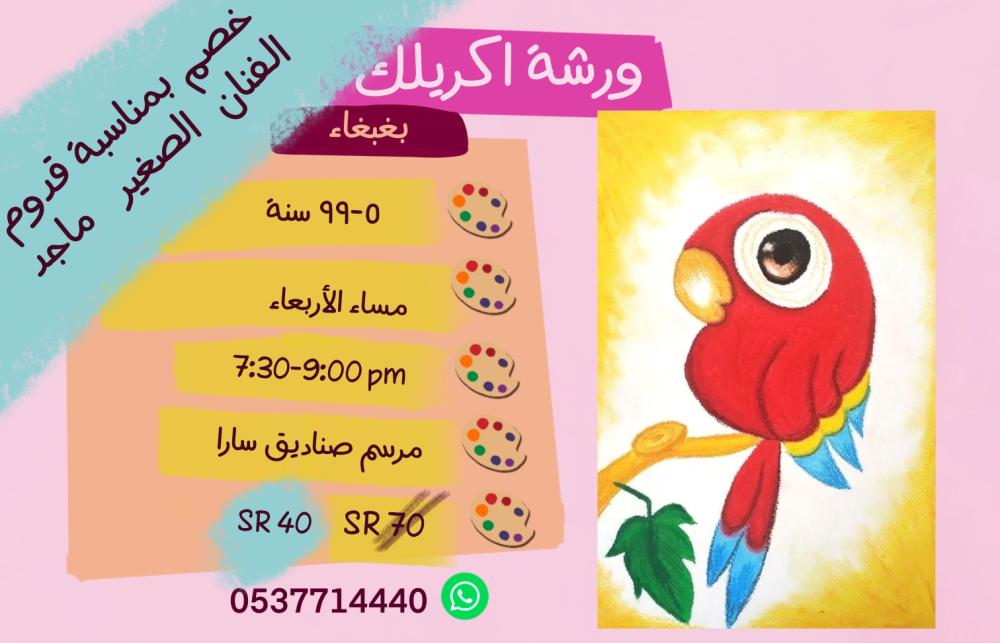 ورشة يوم واحد، يتم تعلم مهارة استخدام الفرشة والالوان